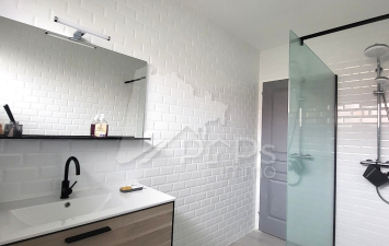 Elle se compose d’un bel espace de vie lumineux de 40 m² comprenant un salon-séjour avec cuisine ouverte équipée, de trois chambres d’environ 11 m² chacune, d’une salle d’eau avec douche à l’italienne, d’un WC séparé et d’un cellier attenant.