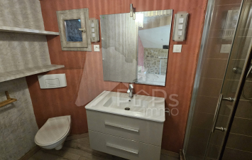 D’une surface habitable d’environ 180 m², elle s’articule autour d’une pièce de vie majestueuse aux murs en pierre et plafond cathédrale, baignée de lumière naturelle.