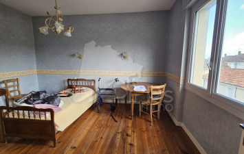 La maison dispose de plusieurs chambres, dont une configuration avec chambre en enfilade équipée d’un point d’eau et WC, laissant entrevoir la création d’une suite parentale ou d’un espace indépendant selon vos besoins.