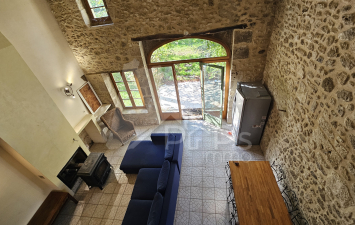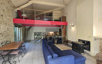 D’une surface habitable d’environ 180 m², elle s’articule autour d’une pièce de vie majestueuse aux murs en pierre et plafond cathédrale, baignée de lumière naturelle.