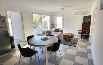 Construit en 2018, le bien bénéficie de prestations économiques et modernes : chauffage par pompe à chaleur air/air, chauffe-eau thermodynamique, double vitrage…