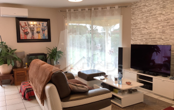 Ce bien parfaitement entretenu est très lumineux. L'entrée s'ouvre sur une pièce principale d'environ 40m² composée d'un espace cuisine ouvert sur le salon séjour. L'ensemble, de couleur nude, est baigné de lumière grâce aux deux baies vitrées qui permettent un accès direct à la terrasse d'environ 30m² dont une partie est couverte. L'espace nuit comprend 3 chambres d'environ 11 m² chacune munies d'un beau parquet et d'un grand placard intégré. La salle de bain pourvue d'une fenêtre, propose une vasque, un sèche serviettes et possède un grand placard de rangement créé dans la douche initialement existante qui peut être remise en fonction. Un wc séparé paré d'une fenêtre, complète le tout. Le garage attenant directement accessible depuis la cuisine permet d'installer l'espace buanderie. Le terrain d'environ 1641m², planté entre autres d'arbres fruitiers est entièrement clos.
